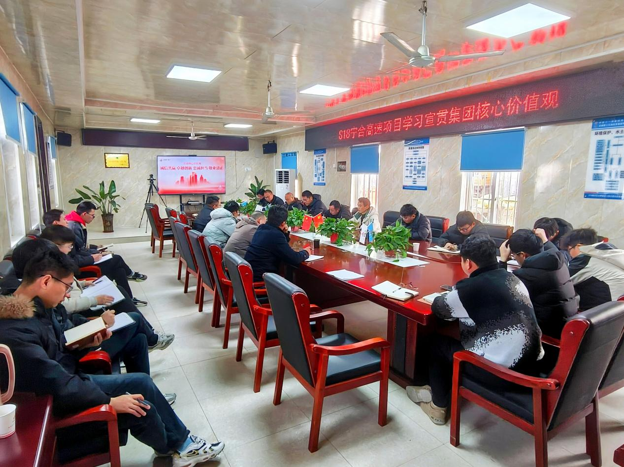 S18寧合高速項目召開專題會議,集中學習了集團下發的《關于開展安徽建工集團核心價值觀學習宣貫的通知》,鮮明解讀了“誠信共贏 卓越創新 忠誠擔當 敬業清正”核心價值觀的深刻含義。