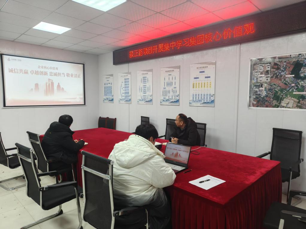潁正路項目召開學習會議,會議傳達了集團印發的《關于開展安徽建工集團核心價值觀學習宣貫的通知》文件,對集團核心價值觀闡釋進行了重點學習和講解。