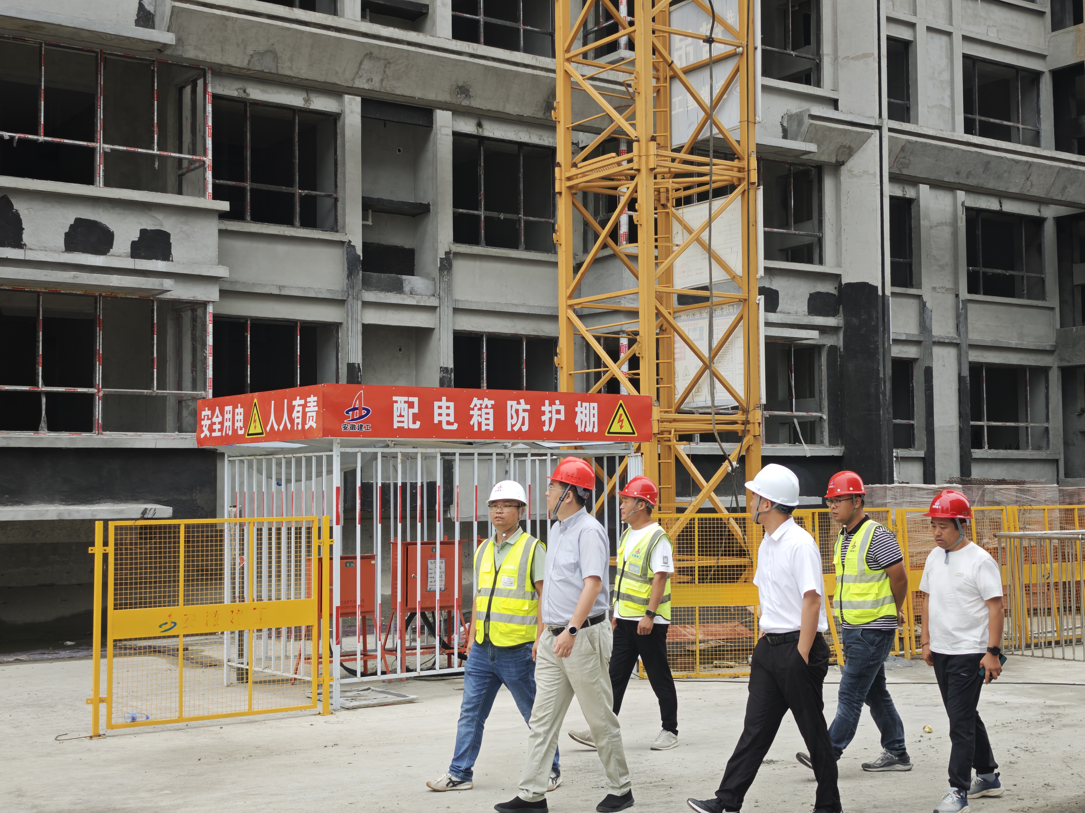 檢查期間,郭彥晨一行重點查看了項目現場的臨時用電管理、消防設施配備、基坑溝槽防護、大型機械設備運行維護、文明施工落實等情況,了解節假日值班值守的具體安排,并就確保“雙節”期間項目建設安全、平穩、有序推進提出具體要求。
