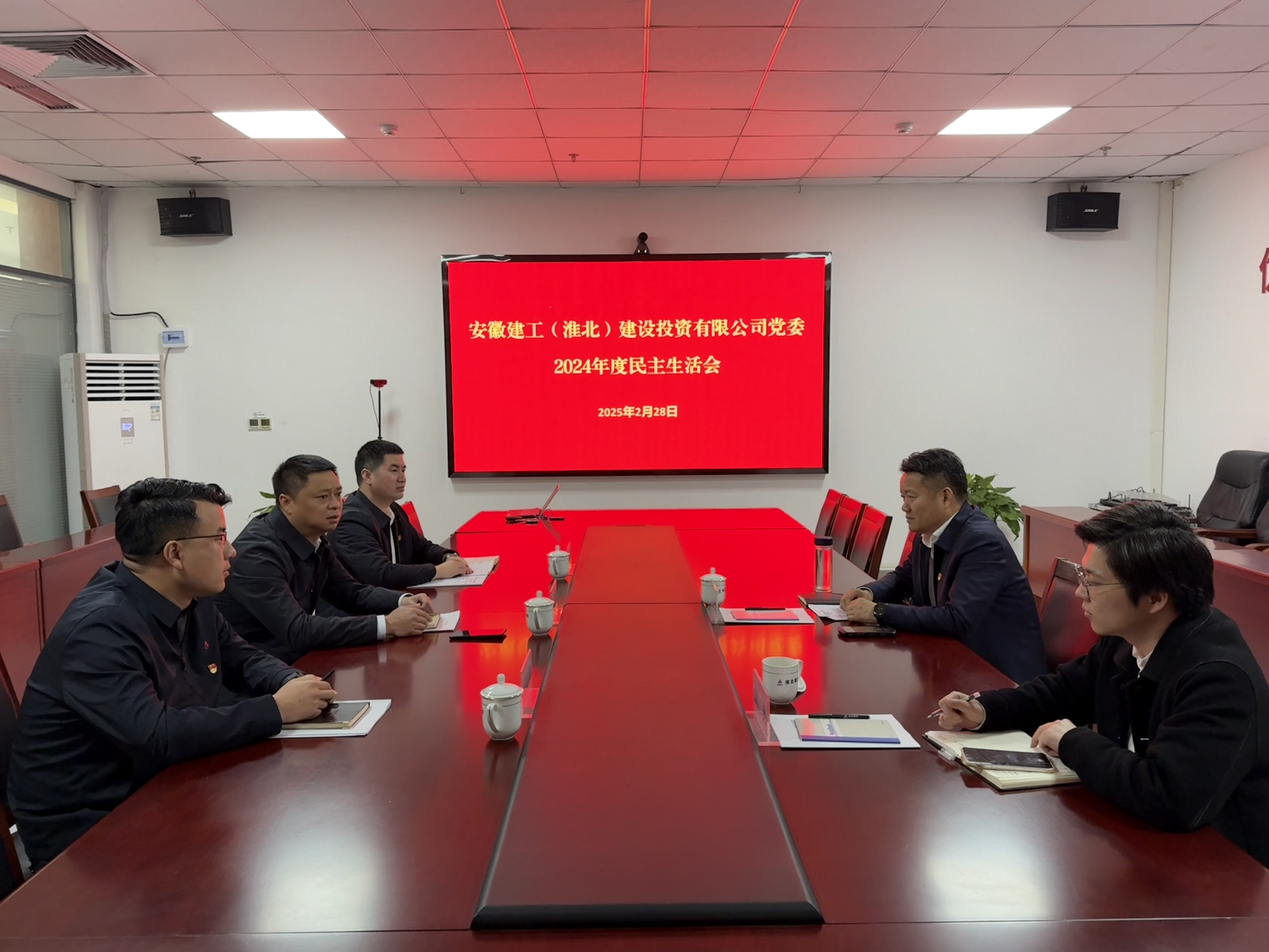 根據集團黨委部署,2025年2月28日上午,安徽建工(淮北)建設投資有限公司黨委召開2024年度黨員領導干部民主生活會。安徽建工股份黨委委員、副總經理、安徽水利黨委書記、董事長張鍵帶隊蒞臨指導。公司黨委書記、董事長、總經理張玉明主持會議。