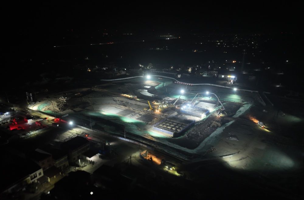 華陽河蓄滯洪區工程挑燈夜戰大體積混凝土澆筑