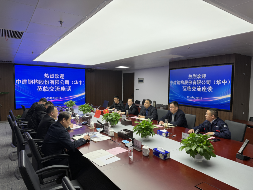 3月3日下午,中建鋼構股份有限公司(華中)黨委書記、董事長黃遠鋒率領考察團隊蒞臨建工智能制造進行考察調研。公司黨委書記、董事長江仲明熱情接待。
