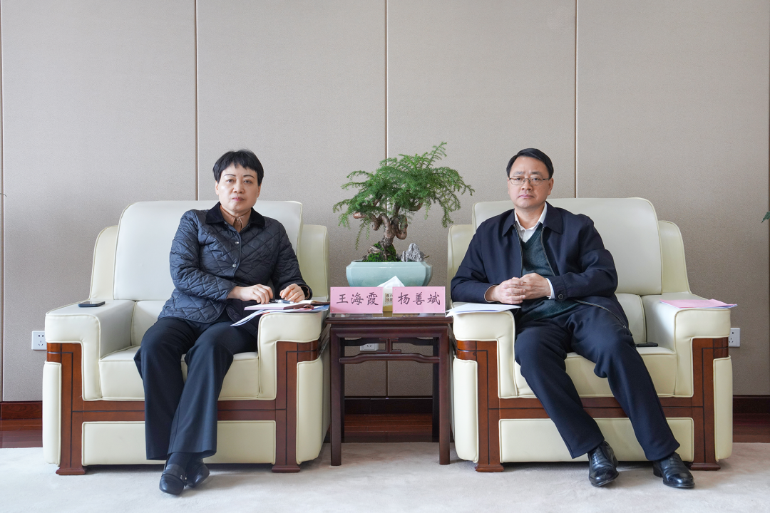 3月6日, 合肥市政府副市長、蜀山區委書記王海霞一行到安徽建工集團走訪調研。集團黨委書記、董事長楊善斌熱情接待,并主持召開座談會。