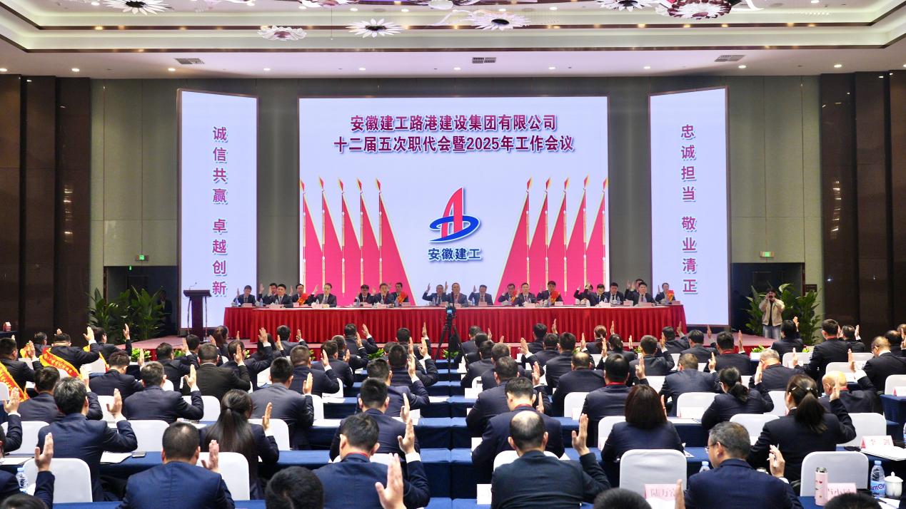 3月6日,安徽建工路港建設集團有限公司十二屆五次職代會暨2025年工作會議在蕪湖勝利召開。會議堅持以習近平新時代中國特色社會主義思想為指導,深入學習貫徹黨的二十屆三中全會精神以及習近平總書記考察安徽重要講話精神,全面貫徹落實中央、省委經濟工作會議和省“兩會”精神,以及集團三屆二次職代會暨2025年工作會議精神,總結2024年工作,分析當前形勢,部署2025年工作任務,動員全體職工迎難而上,奮發有為,在千帆競發中搶占先機,在厚積薄發中蓄力前行,為奮力推進集團轉型發展、高質量發展、大發展貢獻路港力量。