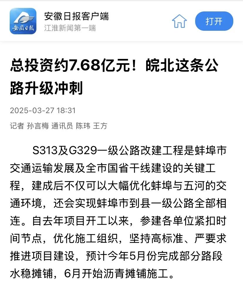 【安徽日報】建工水利:S313及G329一級公路改建工程建設穩步推進