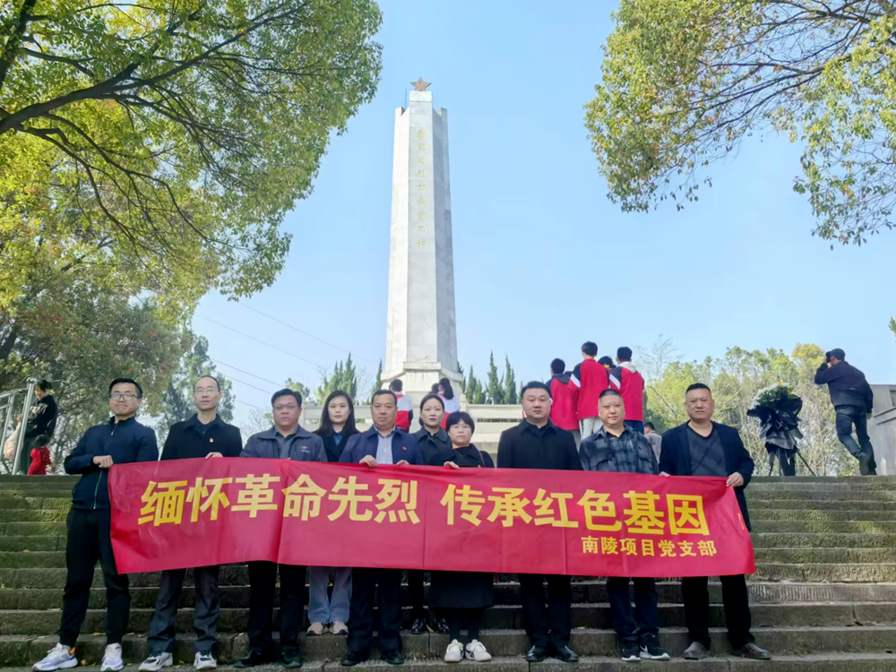 清明節到來之際,南陵項目黨支部組織全體黨員干部前往南陵李家發革命烈士紀念碑開展祭掃活動。