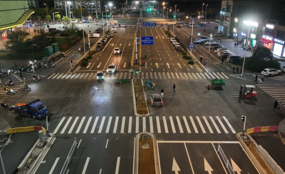 3月31日晚,建工水利霍里山大道(旅游大道-九華東路)改造工程全線主線道路全面通車。