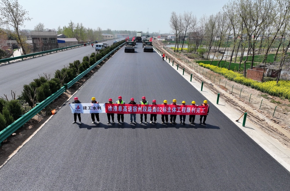 4月5日,建工水利徐州至淮北至阜陽高速公路宿州段路面工程02標項目順利完成路面瀝青上面層鋪筑,標志著項目主體工程全面完成,超前實現重大節點目標,為今年7月全線通車奠定堅實基礎。