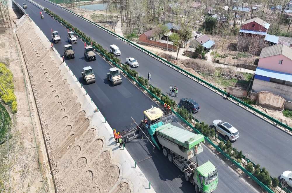 項目全長約20.06公里,按雙向四車道高速公路標準建設,設計時速120公里/小時,主線及匝道路面采用瀝青混凝土結構。項目部嚴格落實“品質工程”要求,引入智能攤鋪監控系統、瀝青路面無人碾壓技術等先進工藝提升了施工安全性與壓實質量。堅持以技術創新推動品質工程建設,完成3項科研課題立項。自2024年下半年正式開工以來,全體參建人員以開工即沖刺的決戰姿態,全力拉滿“進度條”,用時6個月完成項目總產值的90%,2024年度超額完成建設單位勞動競賽目標,并榮獲建設單位2024年優秀施工單位稱號。