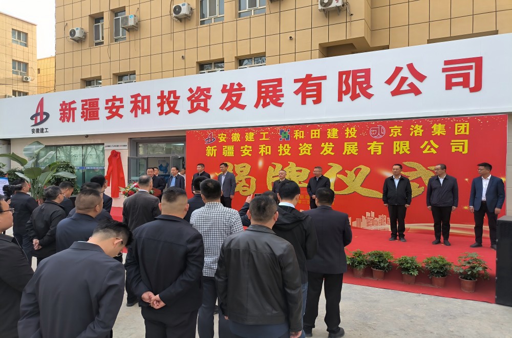 4月8日上午,新疆安和投資發展有限公司在和田地區和田市舉行揭牌儀式。安徽省援疆指揮部臨時黨委書記、指揮長、安徽省教育廳副廳長(正廳級)、和田地委副書記張庚家,和田地委委員、行署常務副專員曾冠軍共同揭牌。和田地區行署黨組成員、二級巡視員陳剛主持揭牌儀式,安徽建工集團股份有限公司黨委委員、副總經理、新疆分公司總經理張沖致辭。