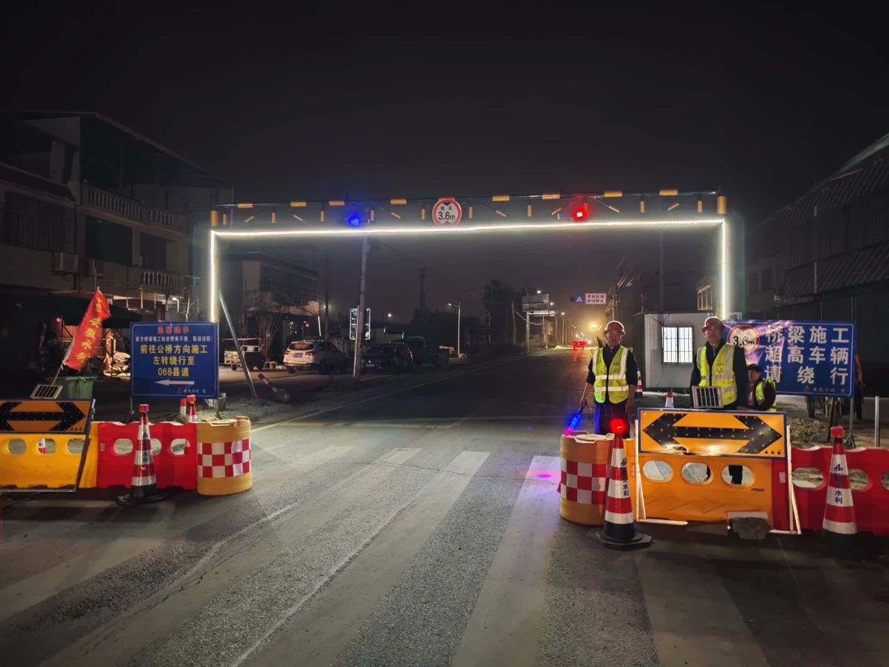 為最大限度保障安全施工,項目安排人員在限高管控路段及橋梁門洞兩側(cè)24小時值班,項目班子帶領員工輪流值班,確保交通安全及生產(chǎn)安全。