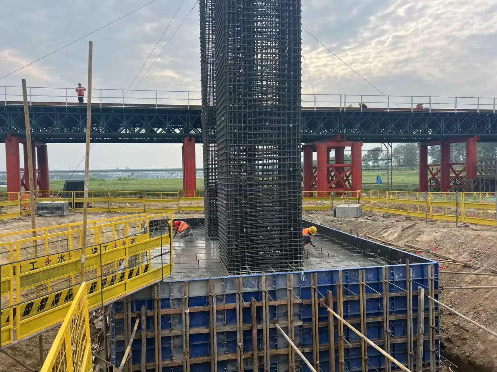 當前,10#-14# 墩樁基已全部完工并通過檢測,承臺施工正在陸續推進,預計5月20日前完成河灘地下部結構施工。鋼棧橋已完成21跨,預計5月25日前可以完成全部棧橋及平臺施工任務。樁基施工累計完成 87 根,完成項目進度的47%。