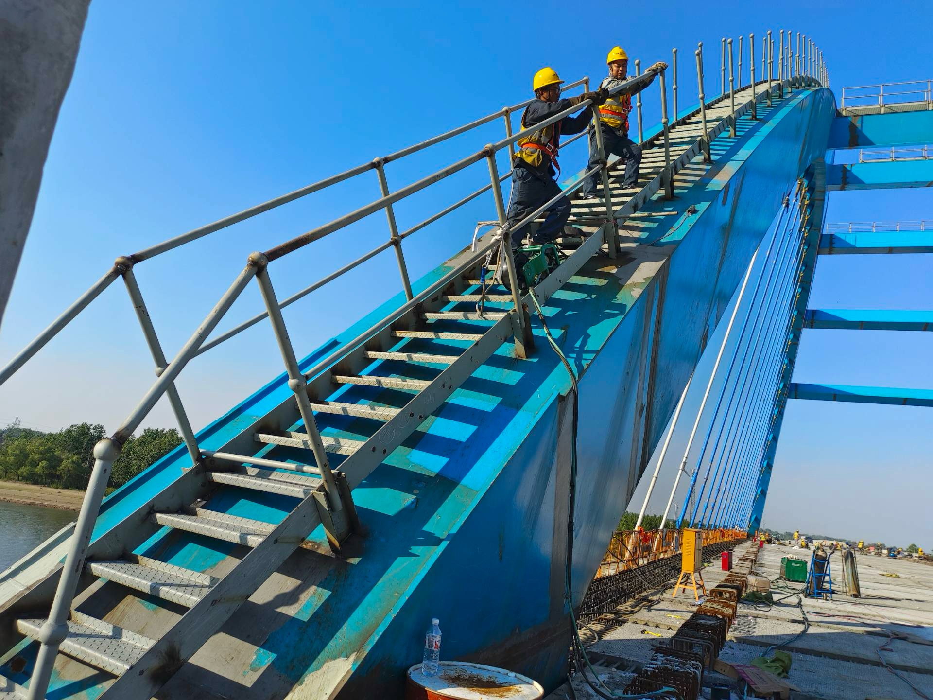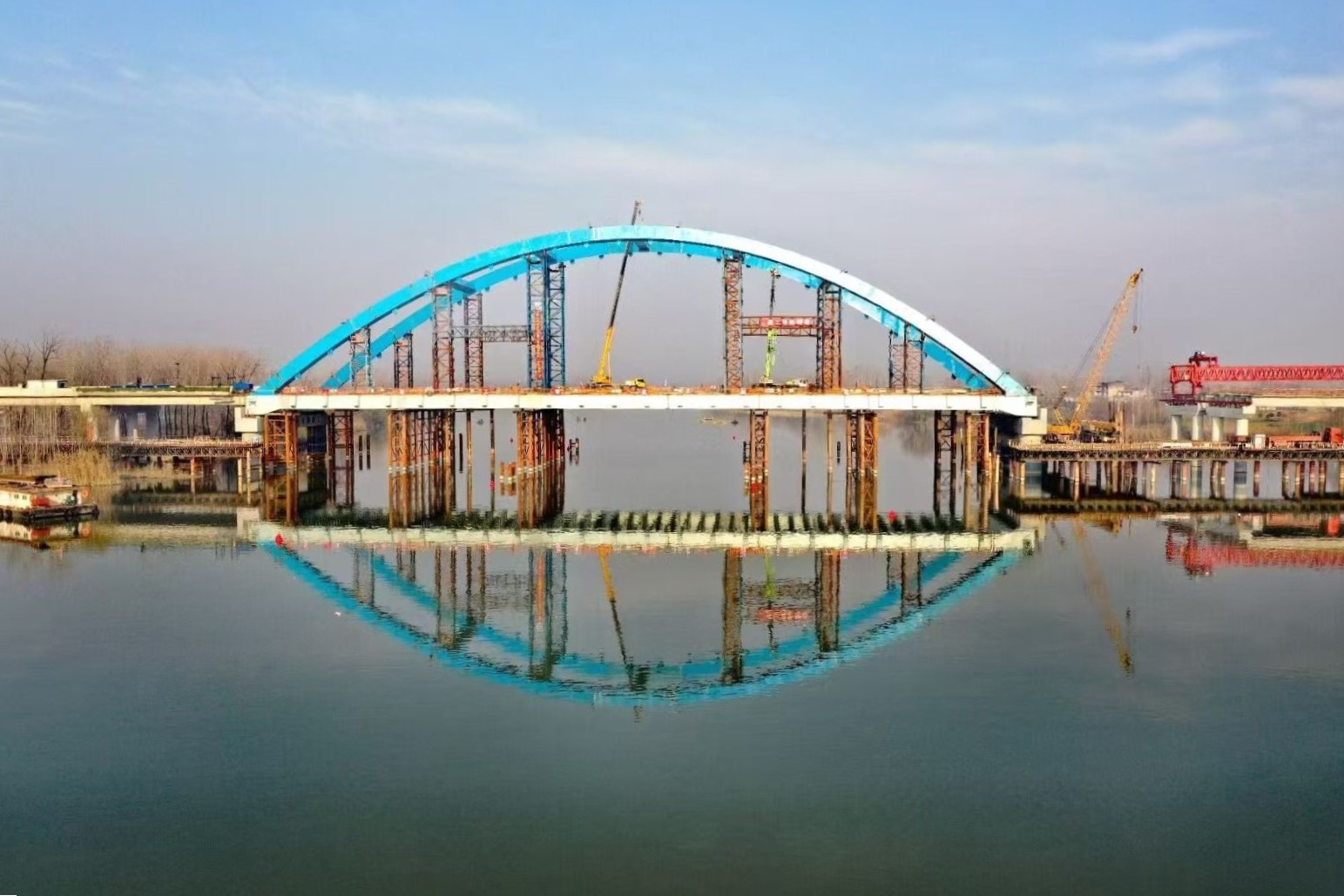 截至目前,大橋主體結構、橋面鋪裝、主跨主梁安裝、主跨拱橋預制橋面板安裝任務已全部完成,正在緊張有序地進行主橋現澆濕接縫作業。在開展橋面鋪裝和主跨拱橋安裝施工過程中,項目團隊運用高精度的測量儀器、先進的吊裝設備,精準控制、精確安裝,確保各項工作達標、安全、高效。