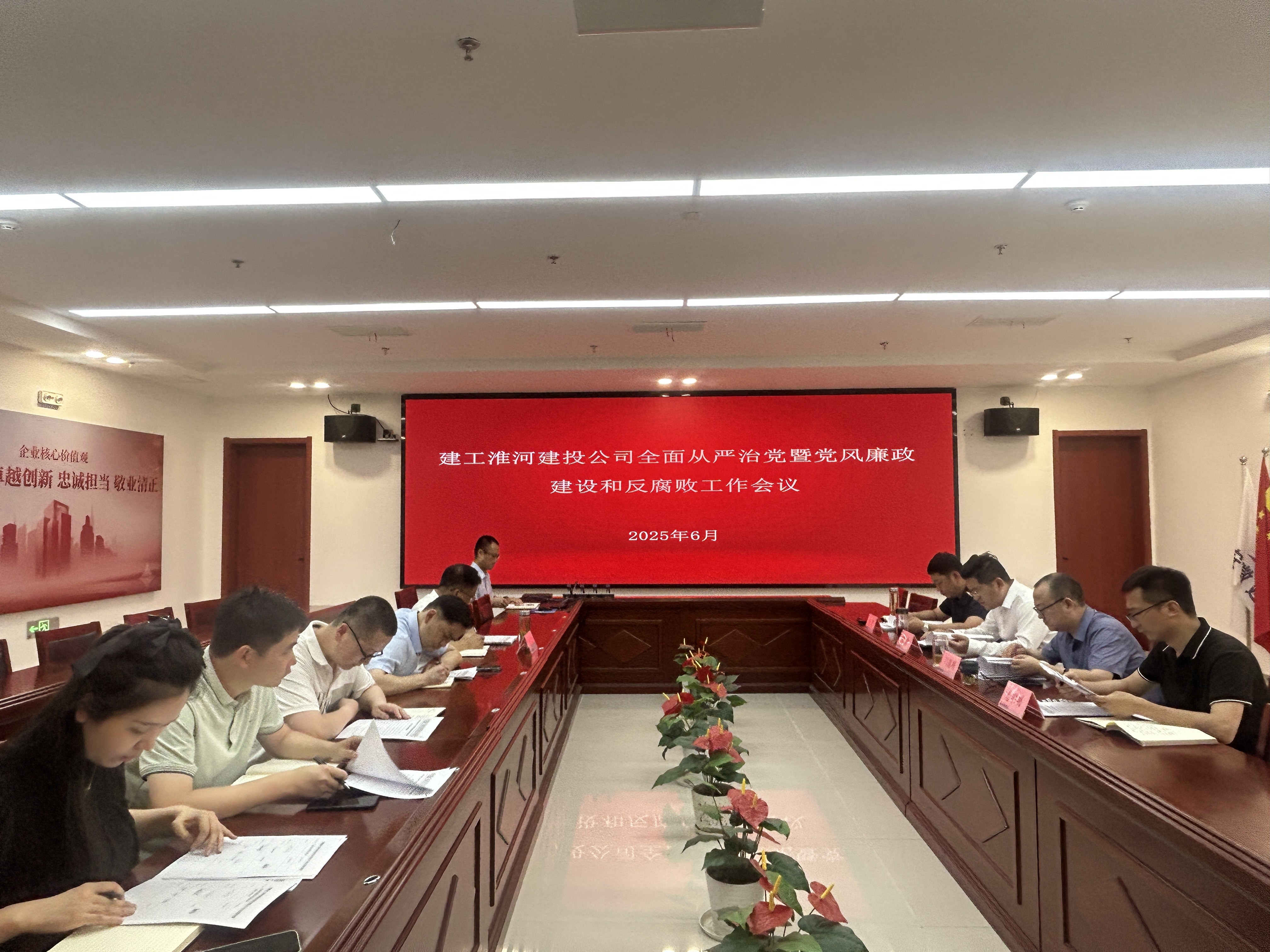 6月17日下午,建工淮河建投黨委召開2025年全面從嚴治黨暨黨風廉政建設和反腐敗工作會議,會議由黨委書記、董事長、總經理陳雷主持并講話,公司黨委成員參加會議。