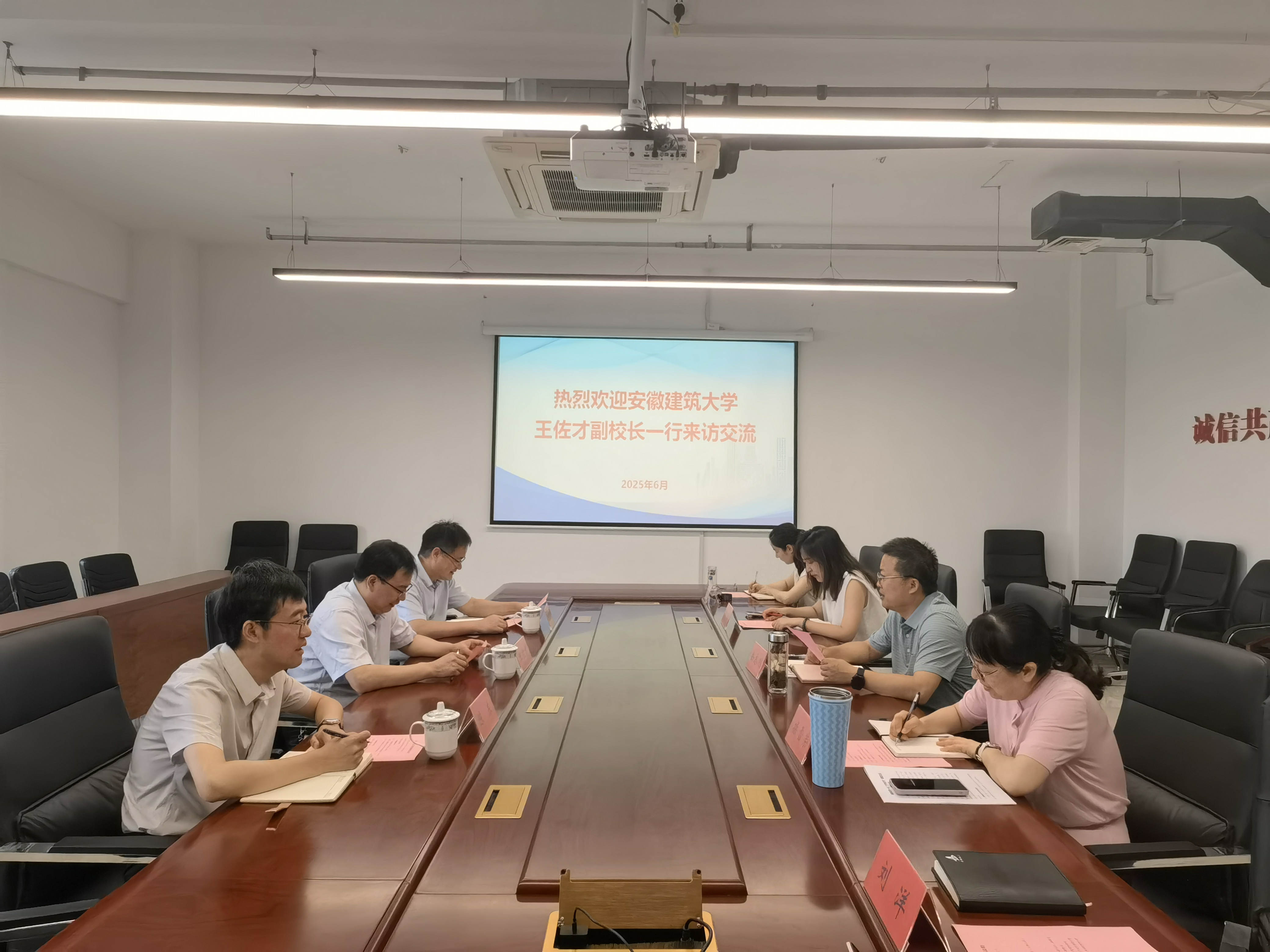 2025年6月11日,安徽建筑大學黨委常委、副校長王佐才一行到訪高新技術研究院,院黨委副書記、副院長余志剛熱情接待并主持召開座談會。
