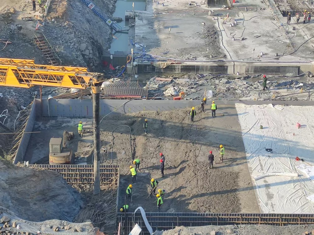 此次水下結構施工的圓滿完成,不僅為項目安全度汛筑牢了防線,更為實現年底通水目標奠定了堅實基礎。截至目前,項目累計完成混凝土澆筑量已達15000余立方米,其中主廠房水下結構全部完工,進水池空箱擋墻4#-8#及前池4#-8#施工也基本完成。