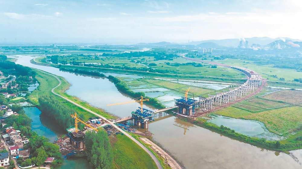 6月26日,由建工建投承建的繁昌區G236項目二標段黃滸河特大橋進入施工關鍵期,《安徽日報》首版圖片新聞報道了該項目的建設成果。