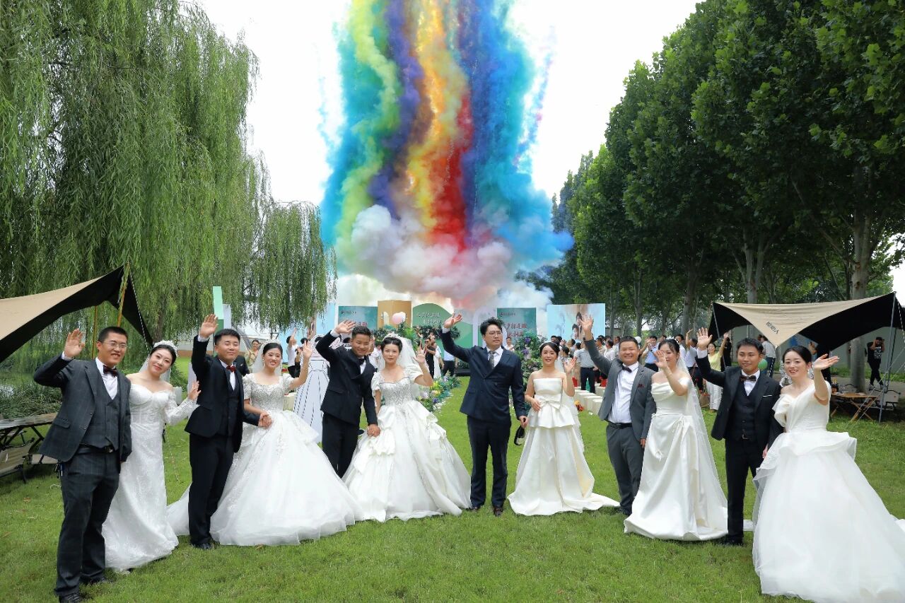 儀式尾聲,絢爛彩煙騰空而起,將現場氛圍推向高潮。隨著主持人宣布婚禮圓滿禮成,公司領導、干部職工紛紛向新人送上祝福,掌聲與歡笑交織,為這場水利人的浪漫盛典畫上圓滿句號。
