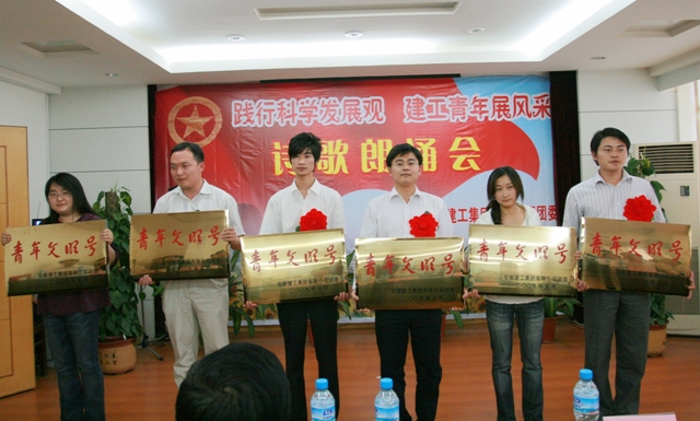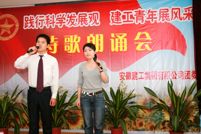 5月12日下午,安徽建工集團公司團委在建工大廈九樓會議室舉辦“踐行科學發展觀建工青年展風采”詩歌朗誦會暨“五四”表彰大會。以歌詠的形式紀念四川汶川特大地震一周年,寄托哀思、表達祝福、傳遞希望、激勵斗志;以表彰先進的形式樹立典型,弘揚和繼承“五四”精神,推進學習實踐科學發展觀,增強高度的政治責任感,展現建工青年的風采和昂揚向上的精神狀態。