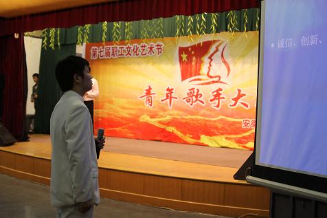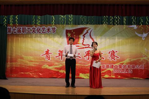 為慶祝祖國六十華誕,促進企業文化建設,展示企業青年的風采,在廣大團員青年中弘揚愛國主義精神,營造青年成長成才良好的氛圍,9月15日,集團公司隆重舉辦第七屆職工文化藝術節青年歌手大賽。省國資委團工委書記、群工處處長王國雨、省合唱協會主席徐俊松、合肥市文廣新局社會文化處處長蘇偉、省歌舞團女高音歌唱家周薇等有關領導和專家應邀出席青歌賽。集團公司黨委書記張海平、集團公司紀委書記、工會主席劉振武、集團公司副總經理王元曦、所屬各單位黨政負責同志以及職工代表近300人觀看了比賽。