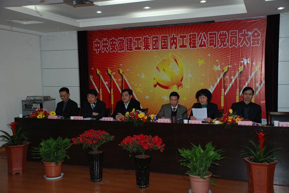 2月10日上午,安徽建工國內公司黨員大會在集團公司九樓會議室隆重舉行。國內公司領導班子、全體黨員參加會議。集團公司黨委書記張海平、副總經理戴良軍、黨委工作部主任吳曉伍出席會議。會議由公司總經理、黨總支副書記陳傳文主持。