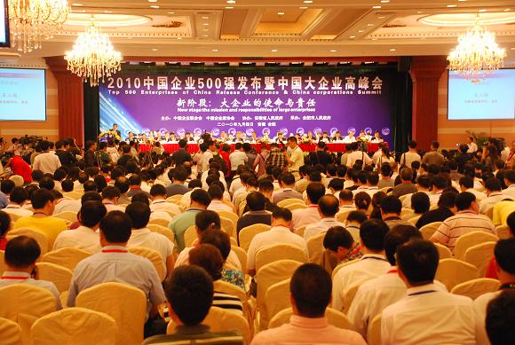 2010 Top 500 Enterprises of China Release Conference & China Corporations Summit opened in Anhui International Exhibition Centre on the afternoon of September 4th. Mr. Wang Zhongyu, former Vice Chairman of CPPCC National Committee and President of China Enterprise Confederation and China Entrepreneurs Association made a keynote speech. Mr. Wang Sanyun, Governor of Anhui province and Mr. Huang Shuhe, Deputy Director of State-owned Assets Supervision and Administration Commission of the State Council addressed for the conference. Mr. Li Decheng, Vice President of China Enterprise Confederation and China Entrepreneurs Association presided over the conference. Also present at the conference were Mr. Sun Jinlong, Member of Standing Committee of CPC Anhui Provincial Committee and Secretary of CPC Hefei Municipal Committee, Mr. Huang Haisong, Vice Governor of Anhui province, Mr. Wang Heling, Vice Chairman of CPPCC Anhui Provincial Committee, Mr. Jiang Qiangui, Mr. Wang Jiming, Mr. Yin Yuanping, Executive Vice Presidents of China Enterprise Confederation, Mr. Liang Weiguo, Secretary-General of Anhui Provincial Government. Representatives of Top 500 Chinese enterprises, multinational corporations, scholars and government departments were also present at the conference.