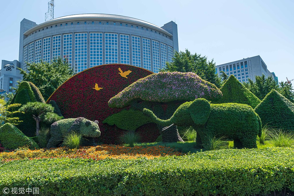 A large parterre is set in front of the gate of Ministry of Foreign Affairs to welcome the Beijing Summit of the Forum on China-Africa Cooperation to be held next month. [Photo/VCG]