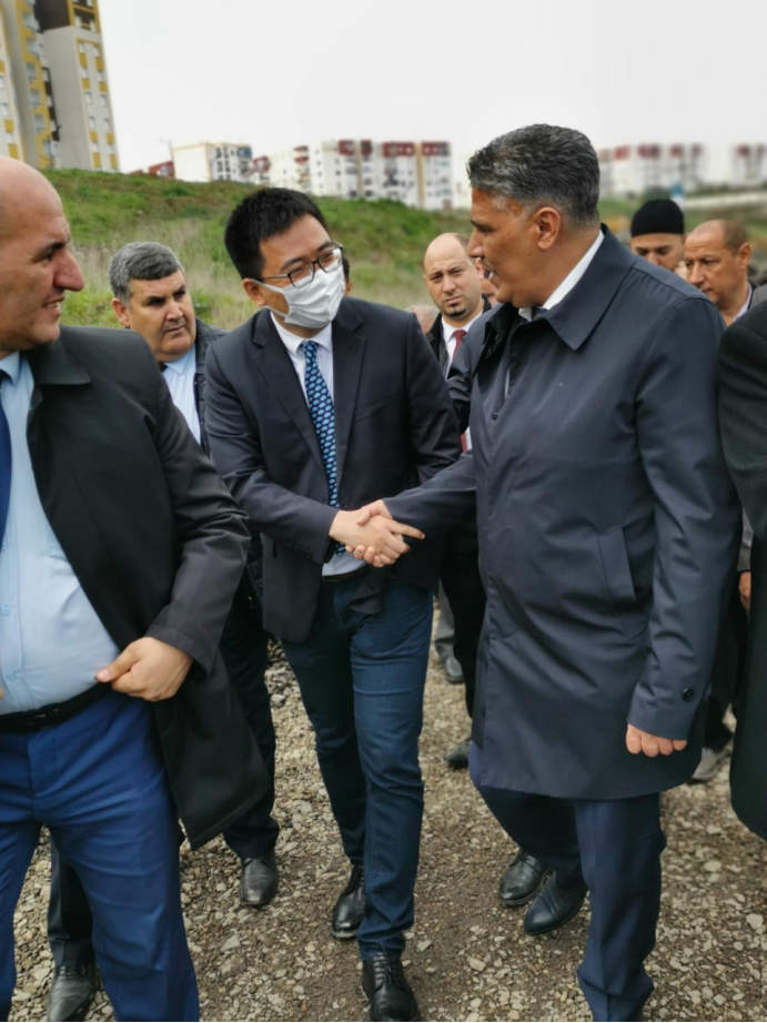 March 20th / Tizi Ouzou, Algeria / The commencement ceremony for the 500-unit housing project in Tizi Ouzou Province, Algeria, was held, H.E. Mr. Mohamed Tarek Belaribi, Algerian Minister of Housing, accompanied by the Governor of Tizi Ouzou Province, the Director of the Housing Authority and other key officials, attended the ceremony. Mr. Bian Yang, General Manager of ACEG Algerian Branch, welcomed them and held a talk with them.