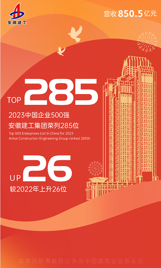 September 20 - China Enterprise Confederation and China Enterprise Entrepreneurs Association jointly released the 2023 List of China's Top 500 Enterprises. ACEG ranked the 285th with its operating revenue of RMB¥85.05 Billion, up 26 positions compared with last year.